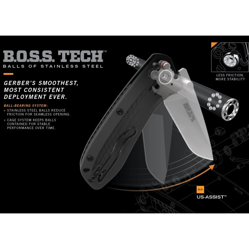 Gerber Nůž US Assist S30V hladké ostří: kapesní zavírací nůž, který lze lehce otevřít klidně jednou rukou, a to bez nejmenšího zadrhnutí. Nůž je totiž opatřen systémem asistovaného otevírání, který funguje na bázi kuličkového ložiska. Bezpečnostní pojistka plungelock, zajistí že se nůž v kapse samovolně neotveře.