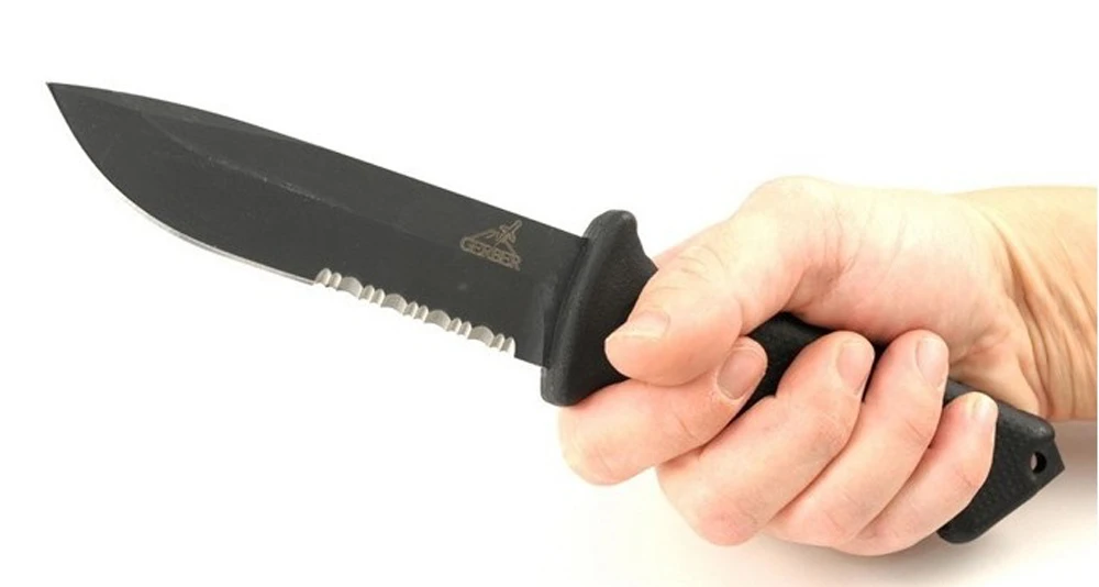 Full tang konstrukce poskytuje vysokou stabilitu, navíc rukojeť je možné využít jako tlouk, na rozbití okénka atd. Rukojeť neklouže ani mokrá. Je anatomicky tvarovaná. Otvor umožňuje přidělání na ruku nebo k vytvoření oštěpu.