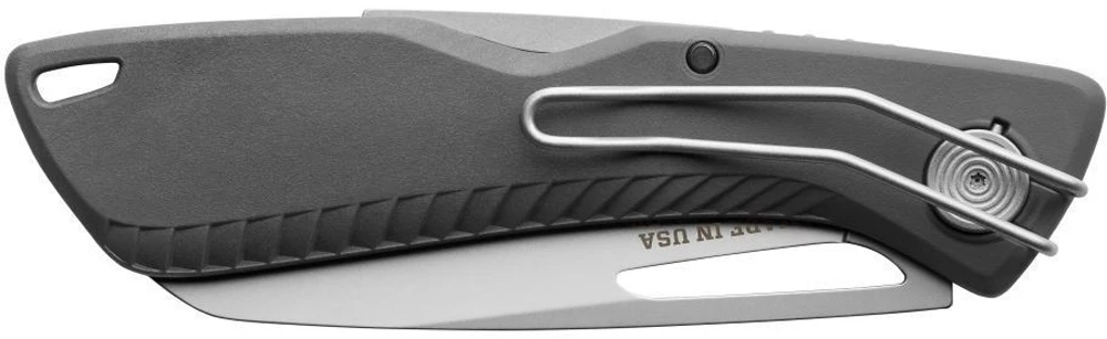 Rukojeť je z nylonu a je dále vyztužená skelnými vlákny. Bezpečnost zajišťuje protiskluzová úprava střenky v dolní části. Má klip na upnutí na kapsu.