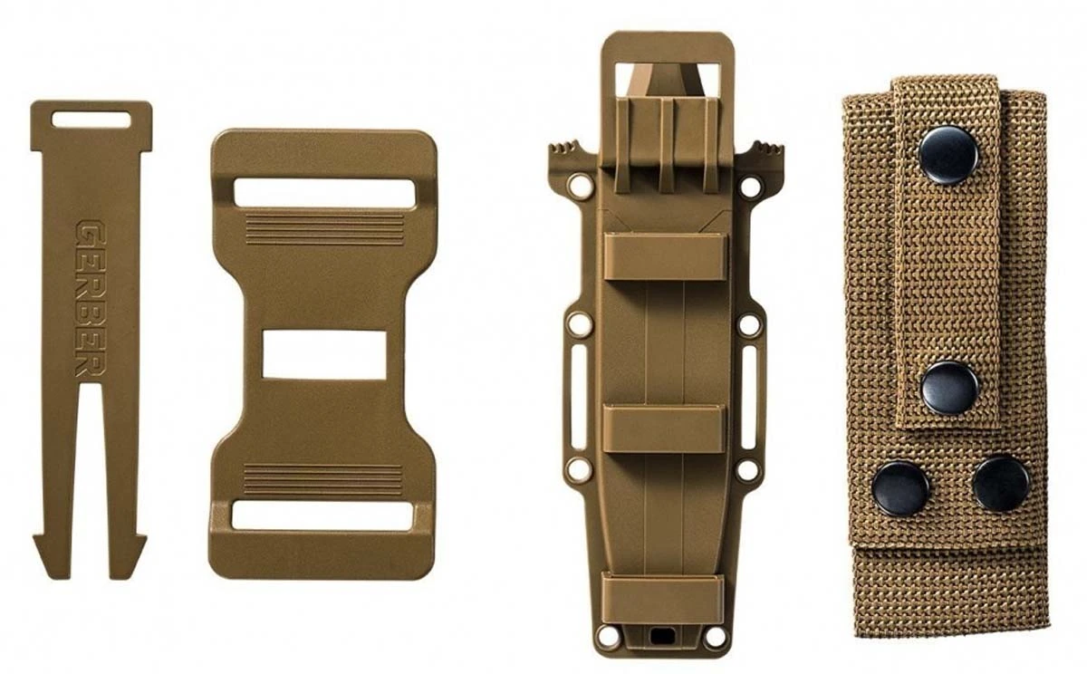 Součástí je pouzdro. Lze upevnit horizontálně tak i vertikálně na pásek, taktickou vestu nebo batoh. Je z tvrzeného plastu a funguje samosvorně. Nůž se dá pojistit páskem na druk.