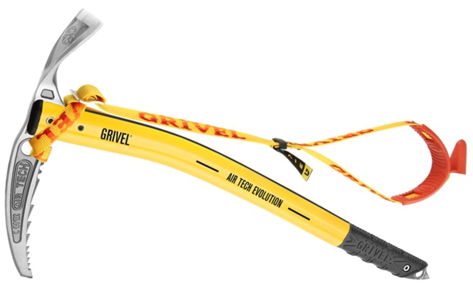 Grivel Air Tech Evo long leash – je univerzální cepín s kovaným hrotem určený hlavně pro lezení lehčích mixů a obecně pro lezení v horách.