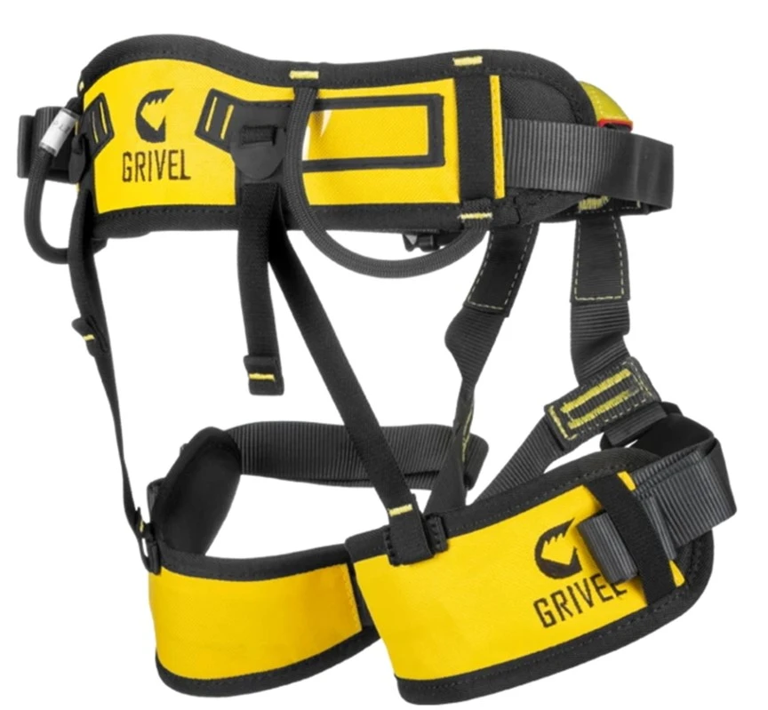 Grivel Easy: jednoduchý všestranný úvazek na lezení. Polstrování na opasku a nohavičkách. Sedák je v jedné velikosti, lze snadno nastavit pomocí tří přezek, dvě spony na nohavičkách a jedna v pase. Dvě poutka na vybavení.