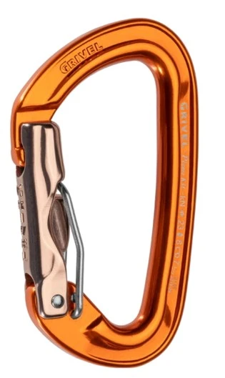 Grivel Plume K3L: lehká D karabina s zámkem Wire-Lock, složeným z drátové a plné key-lock západky. Pojistka je velmi spolehlivá, nehrozí nechtěné vycvaknutí.