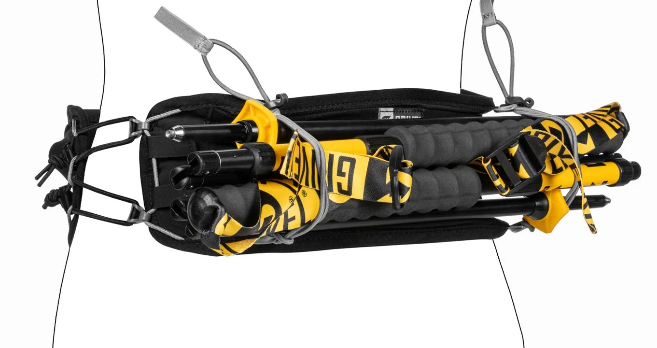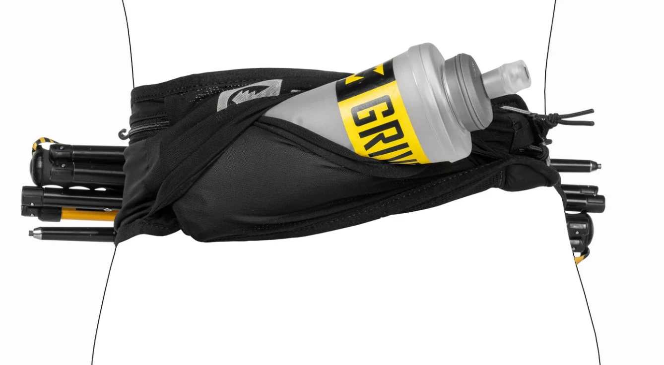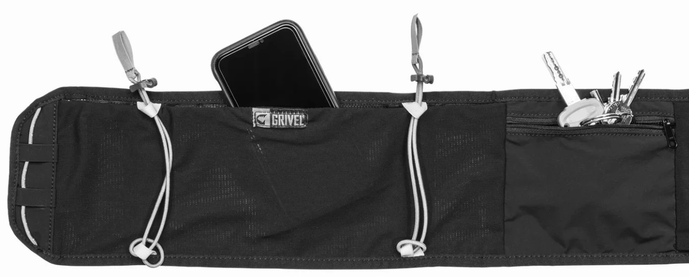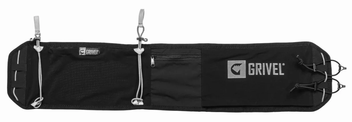 Grivel Running Belt Evo: ledvinka pro trailový běh, je velmi lehká a odolná. Má tří kapsy, dvě síťované a jednu na zip. Dvě nastavitelné gumičky na hole, nastavitelné zapínání pro lepší přizpůsobení.