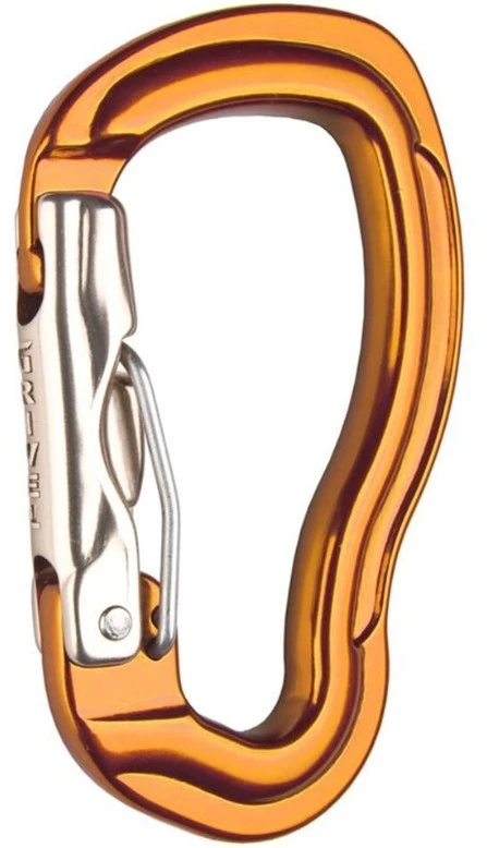 Grivel Tau K12L: lehká D karabina s zámkem Wire-Lock, složeným z drátové a plné key-lock západky. Pojistka je velmi spolehlivá, nehrozí nechtěné vycvaknutí.