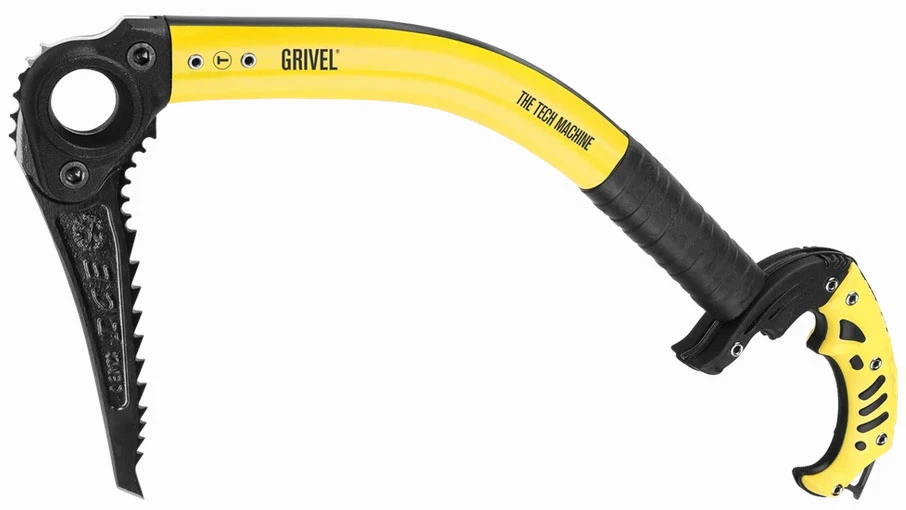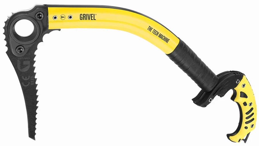 Grivel The Tech Machine – pro drytooling i lezení ledopádů. Cepín je vhodný pro těžké linie a velké převisy. Má anatomicky tvarovanou rukojeť pro co nejlepší úchop. Konec násady má opatřen ochranou prstů před otloukáním, díky tomu lze snadno používat i bez poutka.