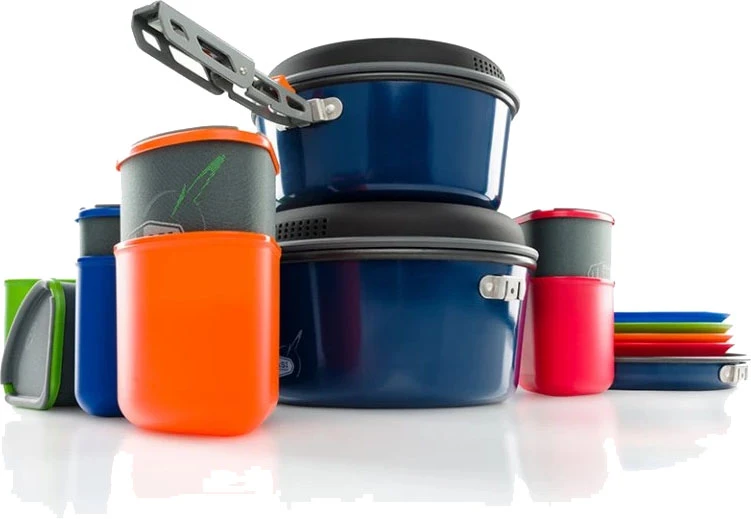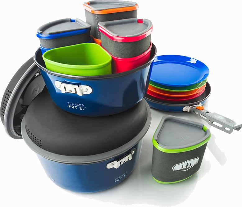 GSI Bugaboo Ceramic Camper: sada campingového nádobí s keramickým povrchem určena pro vaření v přírodě pro 4 osoby.