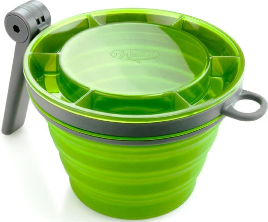 Kempingový skládací hrneček GSI Outdoors Collapsible Fairshare Mug : je vhodný pro cesty například na ranní musli. Výhodou je možnost složení na „placato“. Díky tomu je výborně skladný, ale zároveň se do něj vejde dostatek stravy.