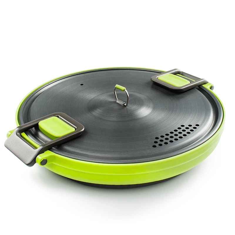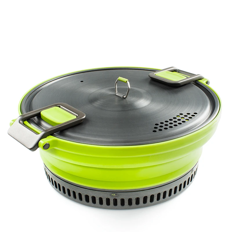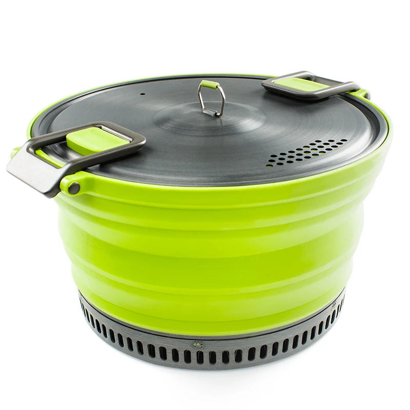 GSI Escape HS Pot 3 L: Jednoduše sbalitelný hrnec Escape HS 3l má dno vyrobené z teflonu s Radiance Technology, která vám zajistí, že se vám nic nepřipálí, a zároveň se vám jídlo rovnoměrně ohřeje. Na dně najdete hliníkový tepelný výměník se kterým trvá ohřívání až o 30% rychleji. Hlavní nádoba o objemu 3 litry, je vyrobena ze zdravotně nezávadného potravinářského silikonu.