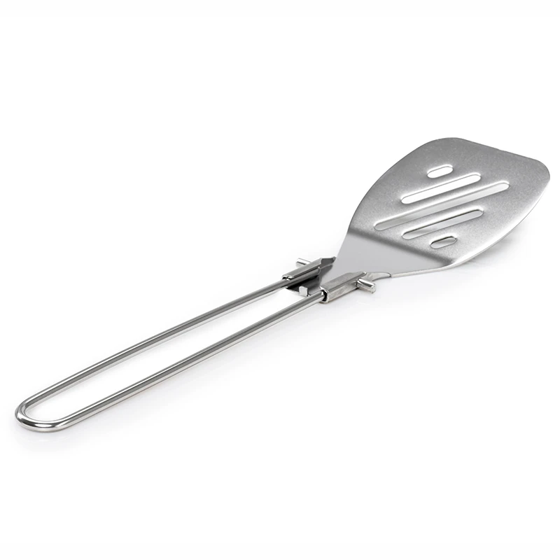 GSI Folding Chef Spatula: Skládací nerezová obracečka vhodná na venkovní grilování, nebo kempování. Je vyrobena z kvalitní nerezové oceli 304. Má nízkou hmotnost a jednoduchou konstrukci se zkosenými hranami, pro lepší manipulaci s jídlem.