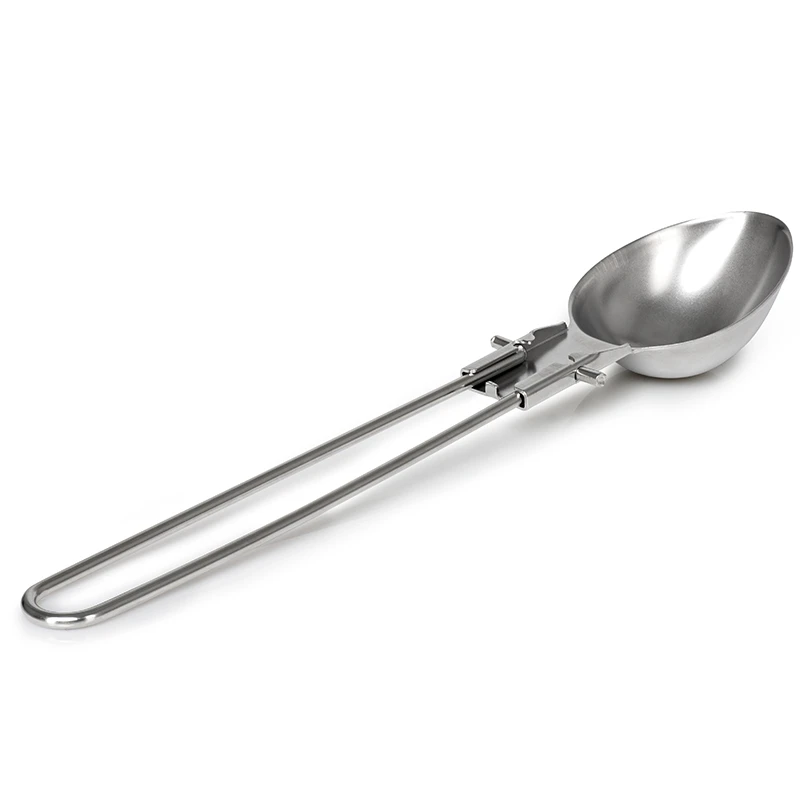 GSI Folding Chef Spoon: Skládací naběračka / servírovací lžíce vyrobena z kvalitní nerezové oceli 304. Lžíce je velice lehká a vysoce odolná, proto ji využijete při cestování nebo vaření v přírodě. Skladnost lžíce nabízí dvě pozice - v ůhlu 45° poslouží jako naběračka, a ve vodorovné pozici poslouží jako lžíce. Lehce ji složíte i rozložíte.