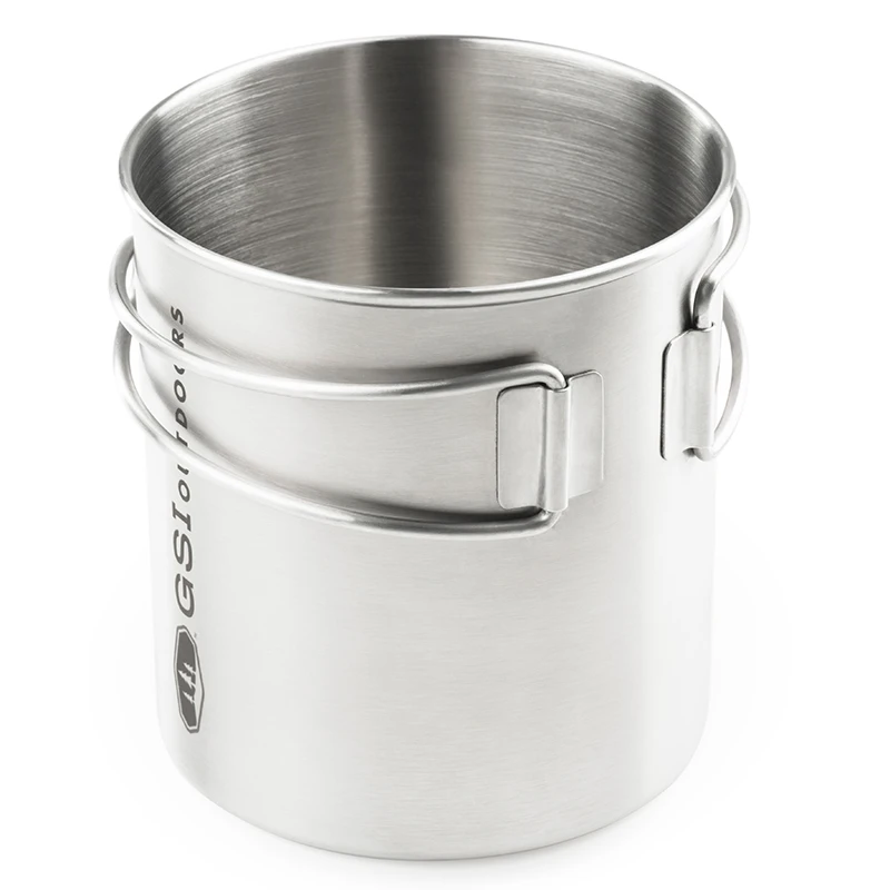 GSI Glacier Stainless Bottle Cup Larg: Nerezový hrnek pro cestovatele a dobrodruhy. Je vyroben z kvalitní a zdravotně nezávadné nerezové oceli. Vydží tak roky intenzivního používaní. Lze ho použít zároveň jako hnek, ale i také jako malý kastrůlek. Vodu na čaj si můžete ohřát přímo v něm. Má sklápěcí rukojeť, a díky tomu nezabere moc místa. Pohodlně se vejde do standartní láhve na vodu o objemu 1 litr, čímž vám ušetří spoustu místa v batohu.