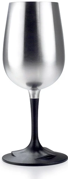 GSI Glacier Stainless Nesting Wine Glass : skládací kempingová sklenka na bílé víno pro cestování s šroubovací nožkou díky níž se dobře přepravuje. Nožička jde vložit do skleničky, proto je při přepravě skladná.