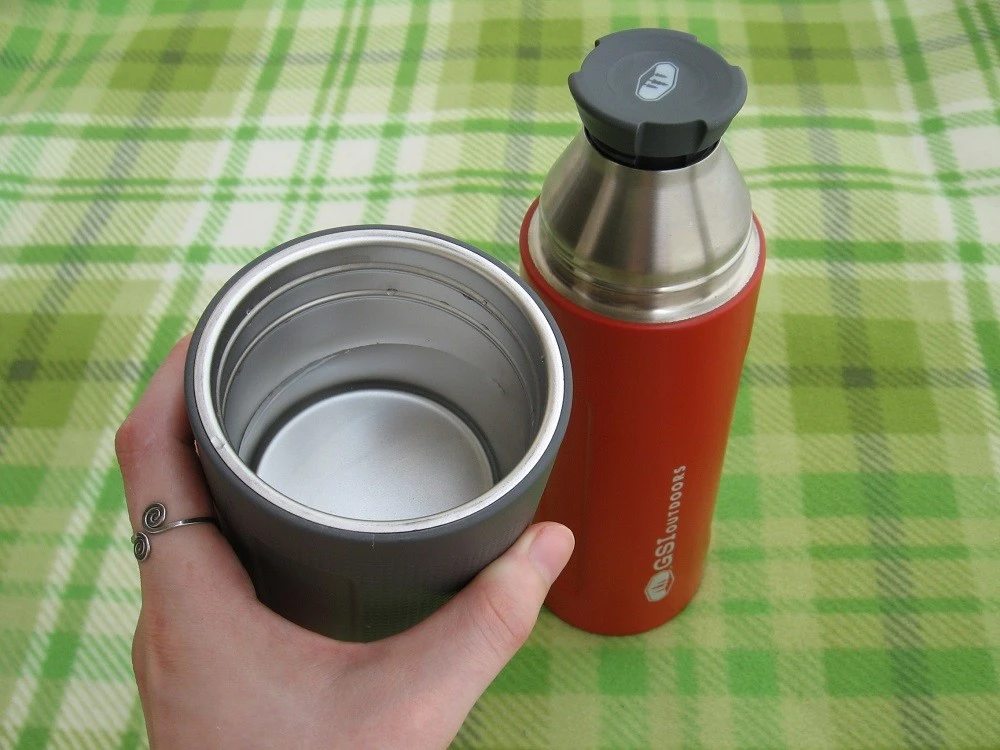 Termoska GSI Glacier Stainless Vacuum Bottle 1l: vám udrží nápoj dlouhou dobu teplý. Dokáže udržet nápoj teplý až 30 hodin, studený až 32 hod. Je vyrobená z nerez oceli, proto má extrémní životnost. Má šroubovací ventil. Víčko – hrneček je těžší, aby ho vítr neodvál. Silikonová podložka zamezí smekání.