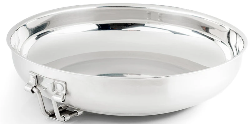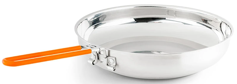 GSI Glacier Troop Frypan 254mm: je skládací nerezová pánvička o průměru 27 cm. Solidní velikost, už se na ní vejde flákota masa. Je určená pro stanování nebo kempování, ale využijete ji případně i doma.