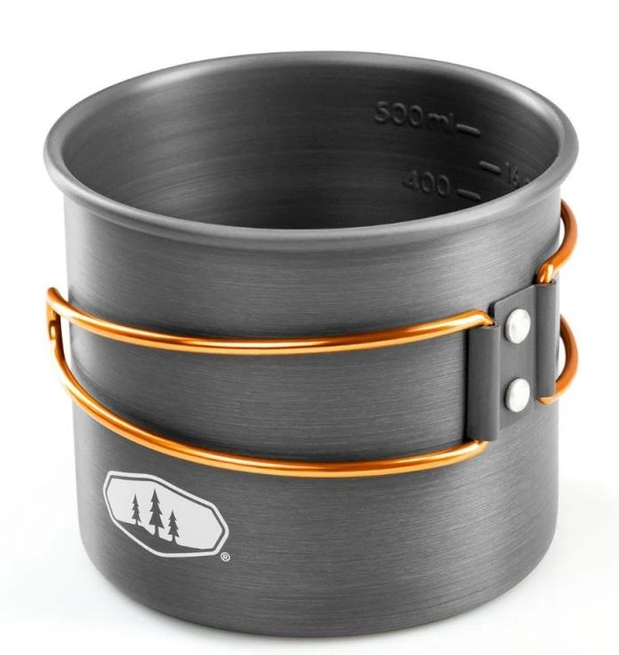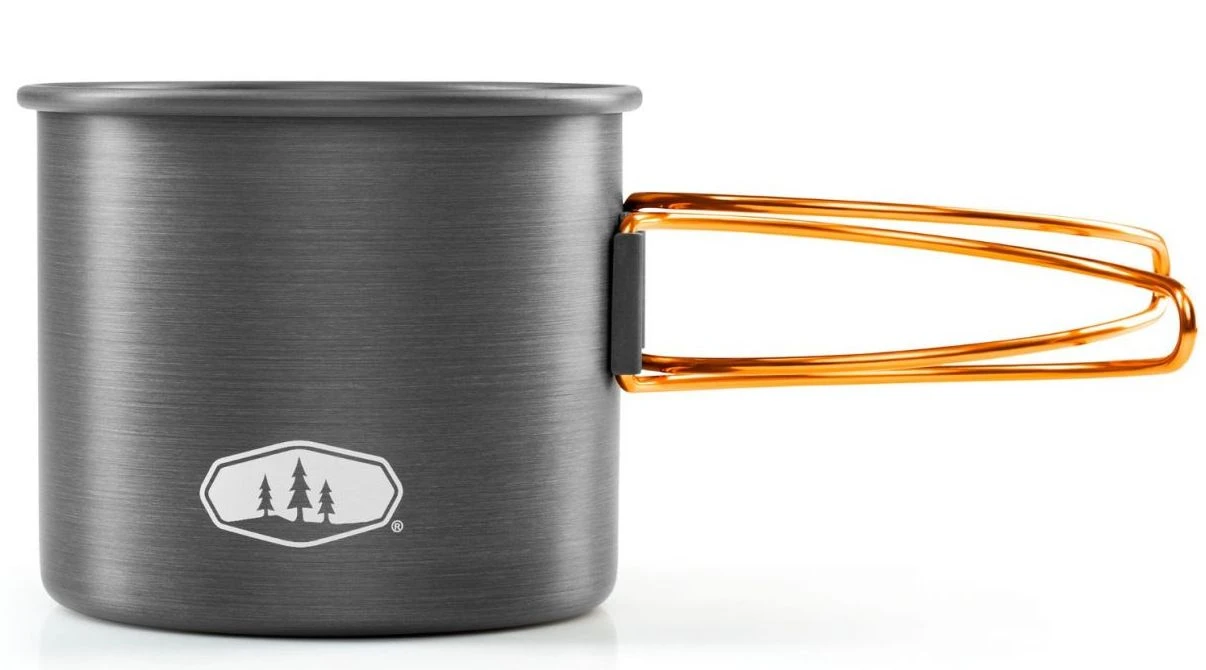 GSI Halulite Bottle Cup : Lehký, robustní tvrdý eloxovaný hliníkový hrnek je navržen tak, aby se vešel přes standardní 1litrovou láhev s vodou se sklopnými rukojetí pro kompaktní skladování.