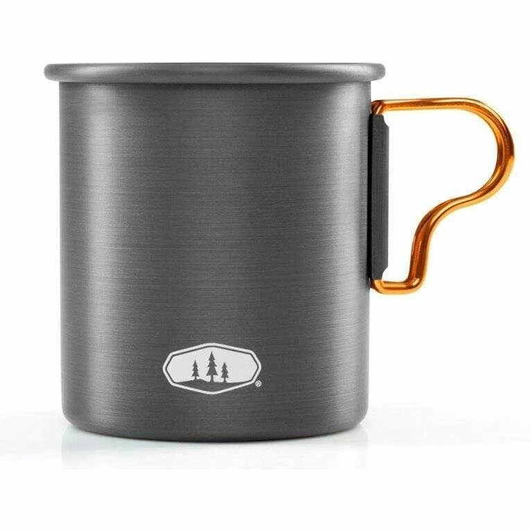GSI Halulite Cup: Lehký kempingový hrneček o objemu 414 ml, se sklápěcím ouškem. Je vyrobený z tvrdě eloxovaného hliníku, který je lehký, vysoce odolný proti oxidaci a mechanickému poškození. Hrnek rozhodně nepatří na otevřený oheň.