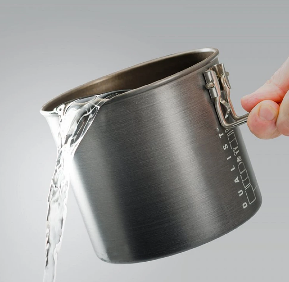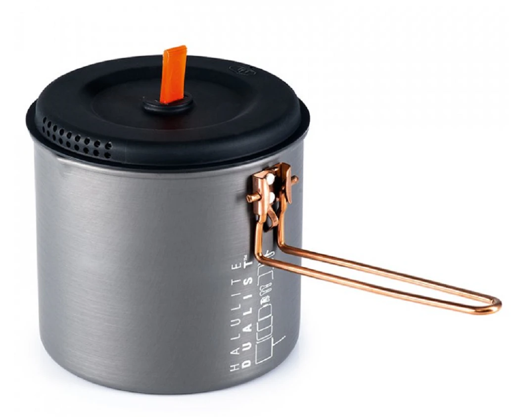 Sada kompaktního outdoorového nádobí GSI Halulite Dualist: je vhodná pro dvě osoby. Nerezový hrnec o obsahu 1,8 l a poklička jsou vyrobené z nezničitelné nerez oceli. Nerez zvyšuje životnost celého systému.