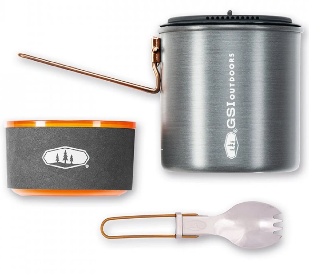 Sada outdoorového nádobí GSI Halulite Soloist :kempingové nádobí je určené pro jednu osobu. Je ideální pro cyklisty, vodáky, trampy, lezce i na horské túry. Má váhu 309 g. Do sady lze umístit také plynovou kartuši 230 g a plynový vařič.