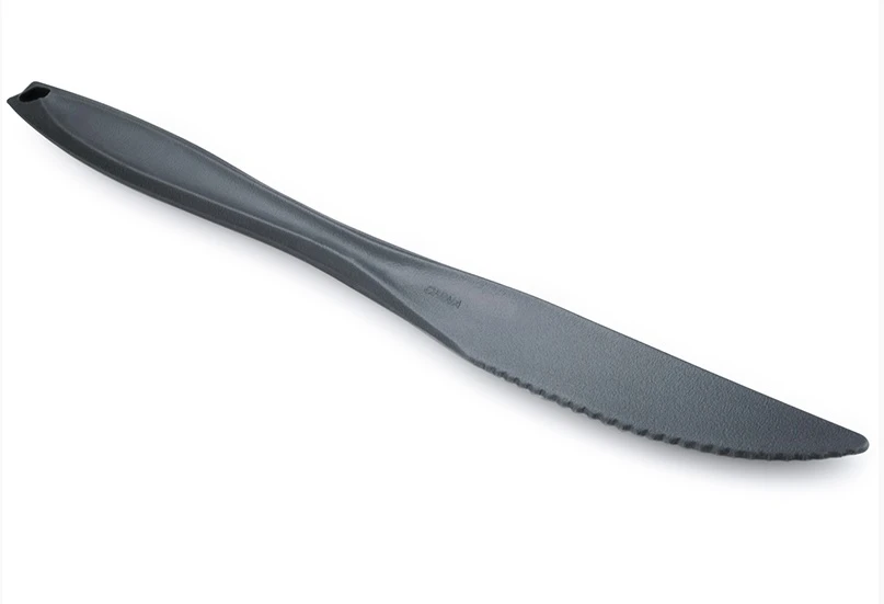 GSI Knife: Pevný a odolný příborový nůž, vyrobený pro kempování a cestování. Je vyrobený ze zdravotně nezávadného Acetalu bez BPA. Díky otvoru na konci rukojeti si můžete nůž jednoduše zavěsit na batoh, nebo kroužek k ostatním příborům.