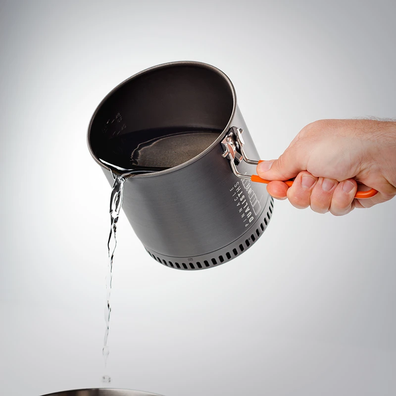 Hrnec na vaření má objem 1,8 L, a jeho dno je potaženo 3-vrstvým teflonem tvrzeným technologií Radiance, který je odolný proti poškrábáním kovovým příborem. Spodek hrnece je vylepšen hliníkovým žebrování, které šetří plyn a zkracuje dobu vaření až o 30%. Uvnitř hrnce najdete praktické rysky na odměření vody. Praktická sklápěcí rukojeť perfektně sedne do umístěných zarážek ať pro sbalení.