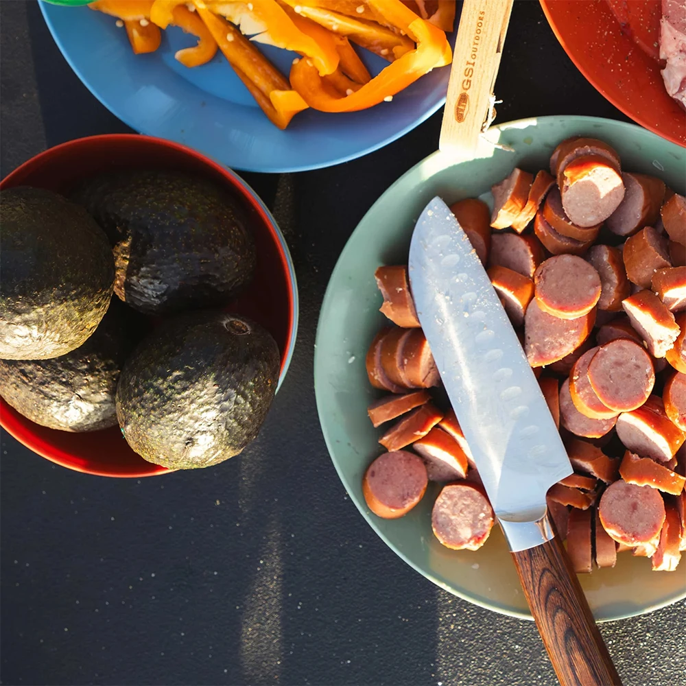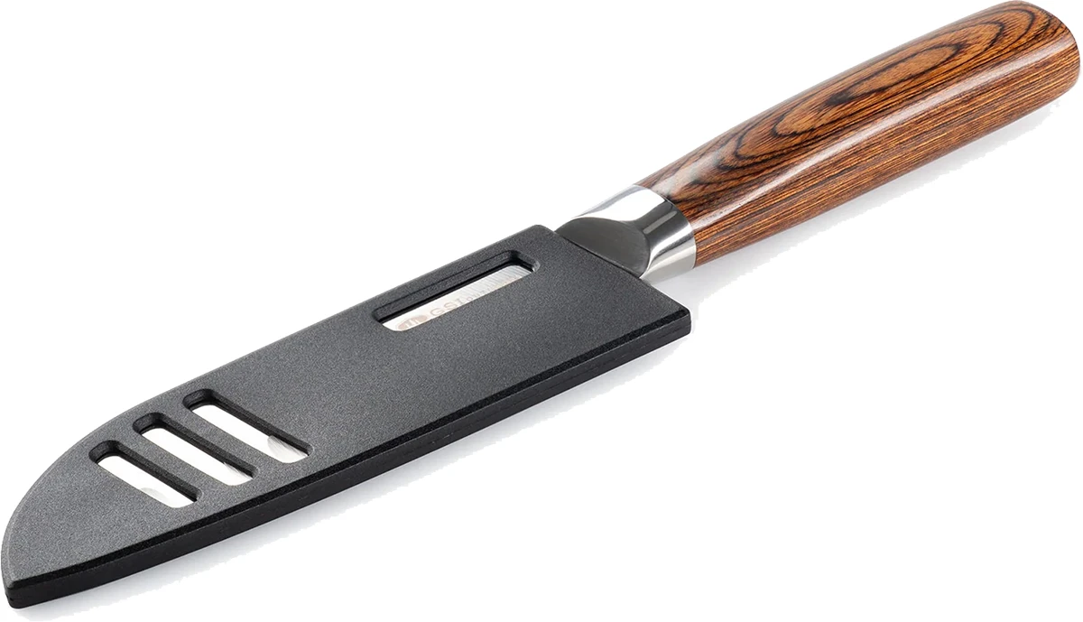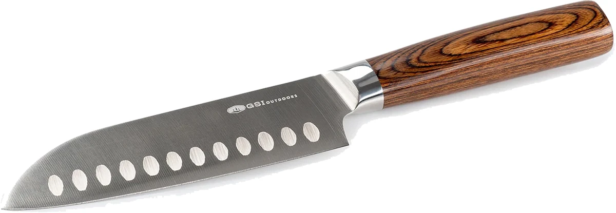 GSI Rakau Chef Knife 6": kempingový kuchařský nůž Santoku s rukojetí z ECO recyklovaného laminátu s odolným plastový pouzdrem.