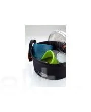 Perforovaná poklička z BPA-free plastu umožnuje bezproblémový únik par z hrnce a zároveň slouží jako sítko například pro slití vody z těstovin.