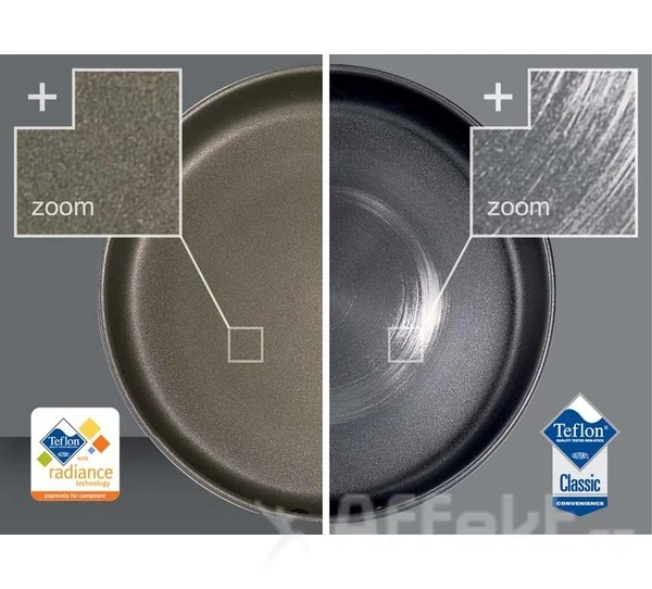 Vyznačuje se skvělou distribucí tepla, velmi vysokou oděruvzdorností a ohřev je o 25% rychlejší než u klasického nerezového nádobí. Teflon s radiance technologií byl vyvinutý firmou DuPont především pro kempingové nadobí. Technologie Radiance je revolucí mezi nepřilnavými povrchy kuchyňského nádobí. Tato nová technologie optimalizuje rozložení teploty při vaření více než kdykoli před tím. Technologie tří povrchů navíc zajišťuje větší odolnost proti poškrábání a opotřebení, která umožňuje použití většiny kovových nástrojů. Do sady lze umístit také plynovou kartuši 220g a plynový vařič.