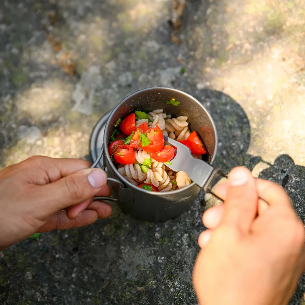 GSI Tekk Trio Folding Cutlery Set: třídílná sada skládacích příborů vhodná na cestování. Sklápěcí rukojeť s aretaci zajišťuje minimální rozměry pro potřebu transportu. Tekk skládací příbory se vejdou do každé campingové sady i hrnku.