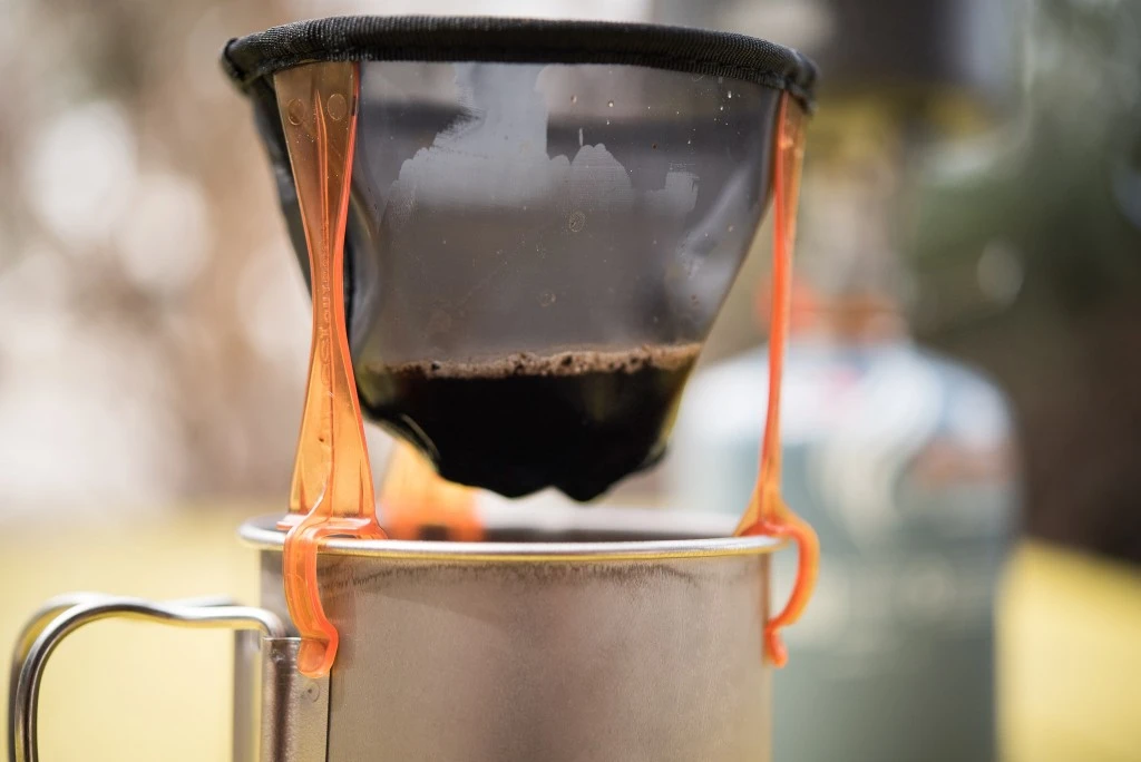 Skládá se ze třech odolných plastových nožek, a nylonového filtru (velikost 2 a 4). Nožičky jednoduše postavíte na jakýkoliv outdoorový hrnek, a na jejich horní část navlečete filtr. Pak už stačí jen nasypat váš oblíbený čaj, nebo kávu a užít si čerstvou chuť vašeho nápoje.