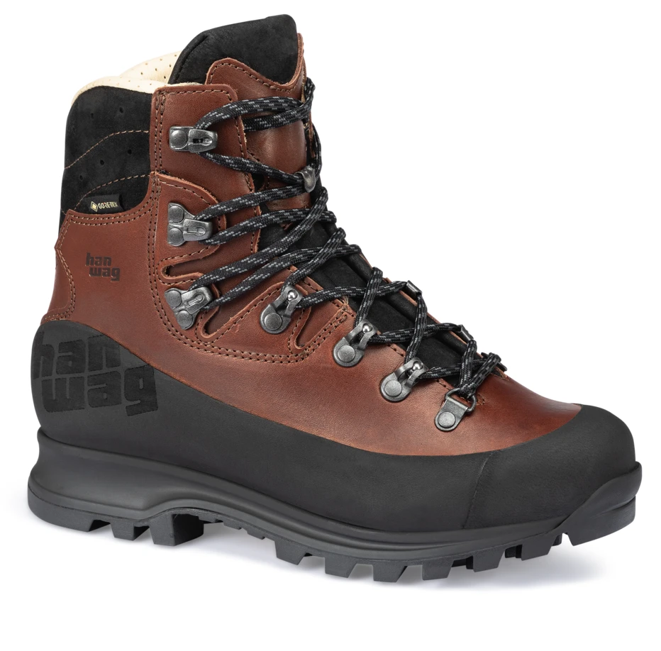 Hanwag Alaska Pro Lady GTX - dámské pohorky určené do velmi náročného terénu. Jsou to klasické celokožené trekové boty s goretexem, mají minimum švů pro minimalizaci poškození. Tyto celokožené trekové boty mají gumovou obsázkou po celém obvodu, která chrání obuv před poškozením.