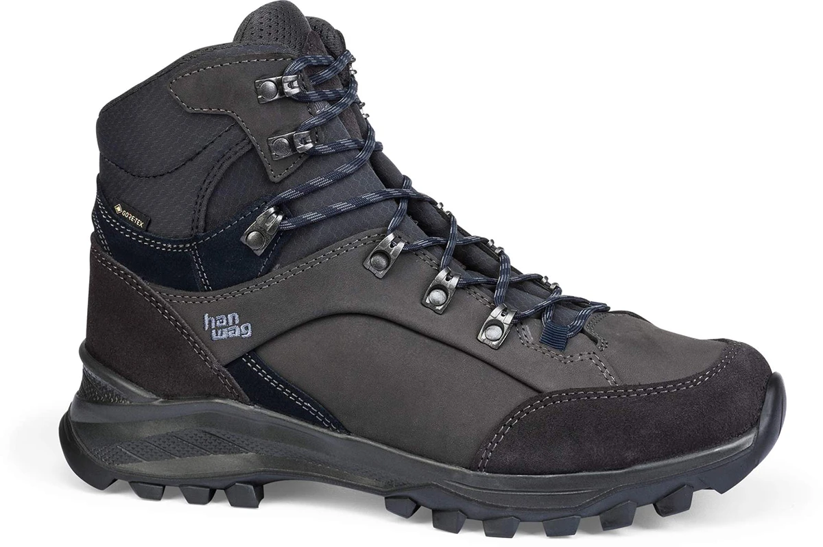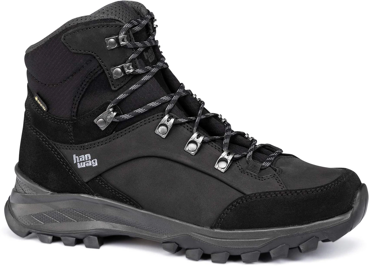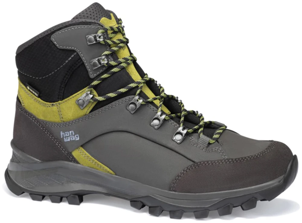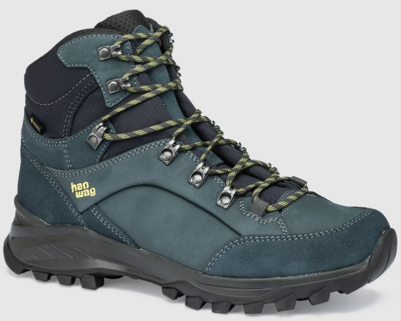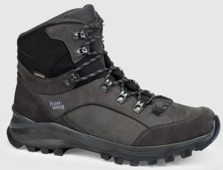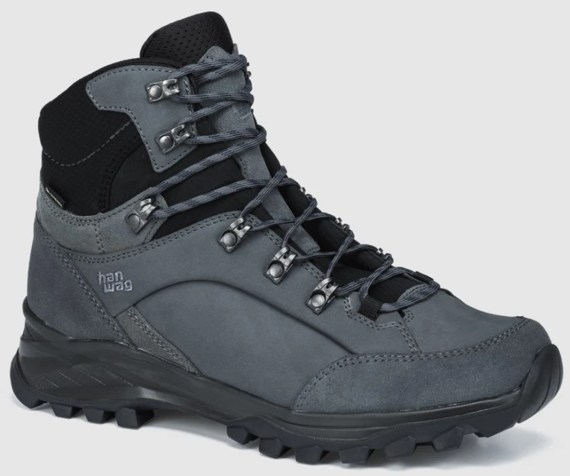 Hanwag Banks II GTX - jsou určené do méně náročného horského terénu v létě, jednodenní aktivitu, pohyb s lehčím batohem. Tyto pánská obuv na turistiku jsou vyrobené z kůže nubuk, která je kombinovaná s Cordurou. To je výhoda v lepší prodyšnosti, hodí se pro letní turistiku. Mají gumovou obsázkou na špičce, která chrání obuv před okopáním. Podešev má tlumící zóny pro změkčení došlapu.