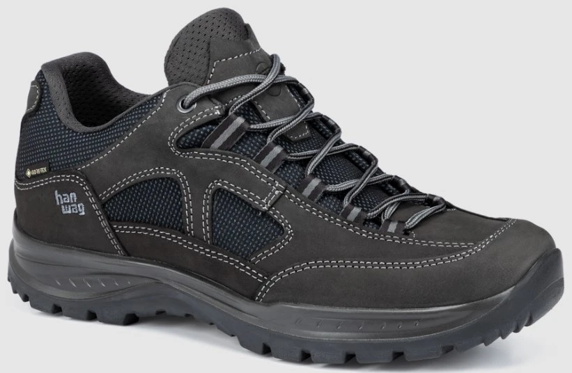 Hanwag Gritstone II GTX - jsou poměrně široké a pohodlné pánské turistické polobotky s goretexem. Mají kombinovaný materiál pro zlepšení prodyšnosti, více exponované části jsou z kůže, méně namáhané jsou z bytelné textílie, která zlepšuje celkovou prodyšnost.