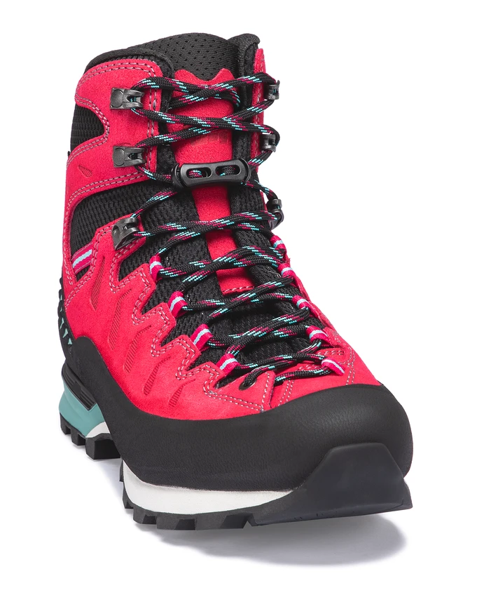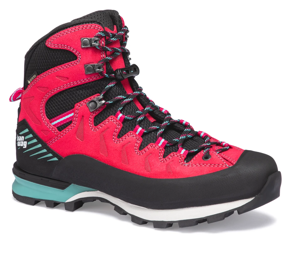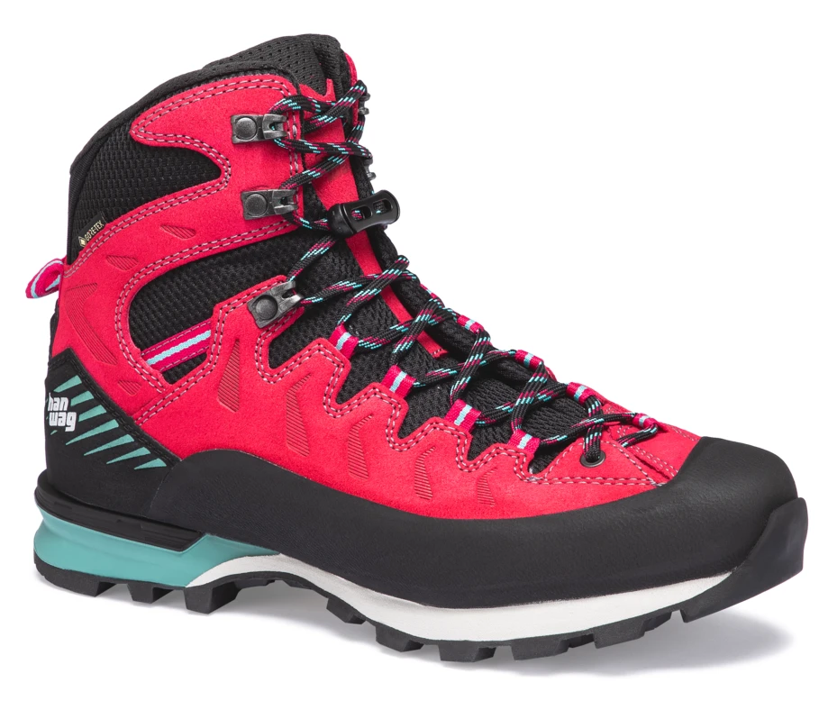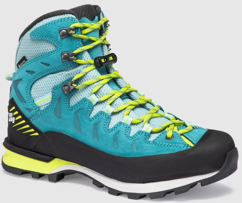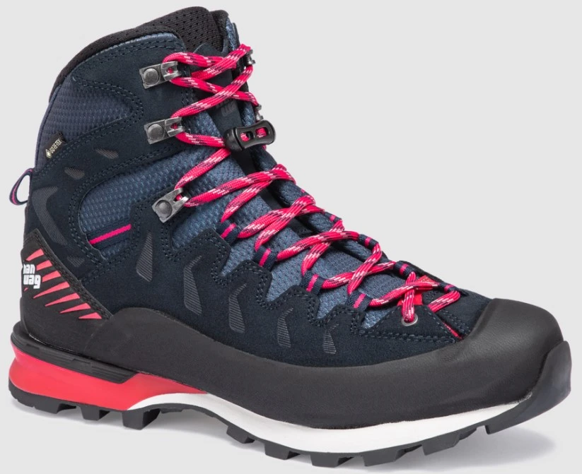 Hanwag Makra Pro Lady GTX - jsou všestranné dámské kotníkové boty určené pro vysokohorskou turistiku, nebo pro lezení ferrat. Boty mají GORE-TEX membránu, jsou voděodolné a zároveň prodyšné. Podrážka Vibram pro lepší přilnavost. Dvouzónový systém šněrování, který neklouže a drží, se dobře přizpůsobí danému terénu. Boty jsou vyrobeny z semišové kůže a textilie, mají výztuhu z TPU v přední části. Střední střih, polstrování v oblasti kotníku.