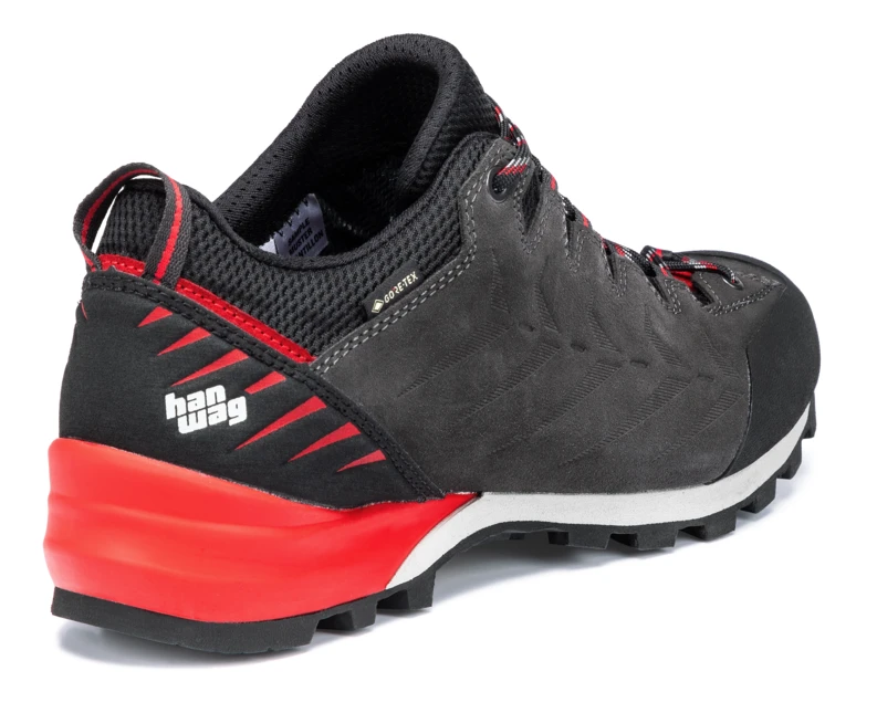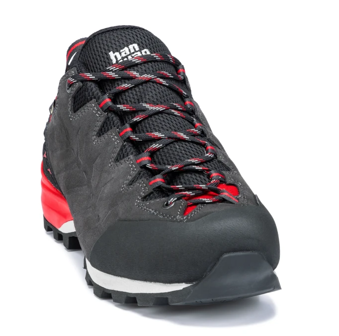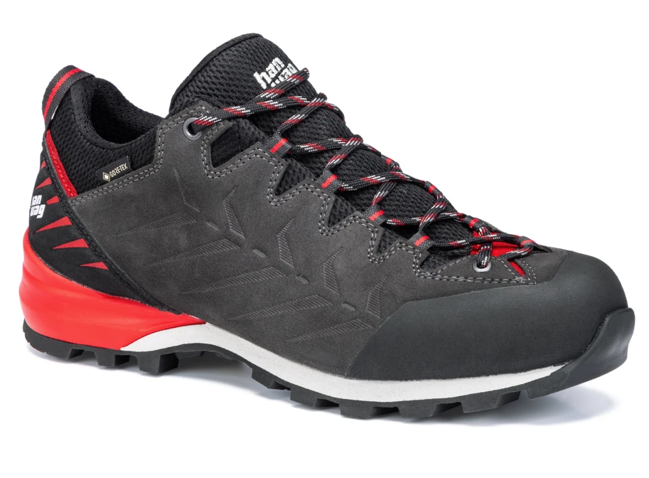 Hanwag Makra Pro Low GTX - jsou robustní pánské approach - nástupové boty. Jsou určené pro lezení ferrat, příchod do skal, turistiku. Jsou vyrobené z robustních materiálů, které vydrží kontakt se skálou. Je u nich použita membrána goretex, která zlepšuje jejich vlastnosti v mokru a dešti.