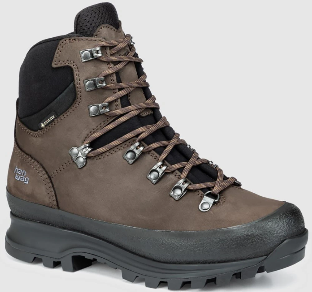 Hanwag Nazcat II Lady GTX - jsou dámské boty pro turistiku v náročném a nestabilním terénu. Jsou dostatečně pevné pro využití v kamenitém a nezpevněném terénu. Jsou vyrobené z kůže, která je doplněná goretexem, jazyk mají textilní, na kotníku je měkká manžeta. Mají gumovou obsázkou po celém obvodu, která chrání obuv před poškozením a vodou.