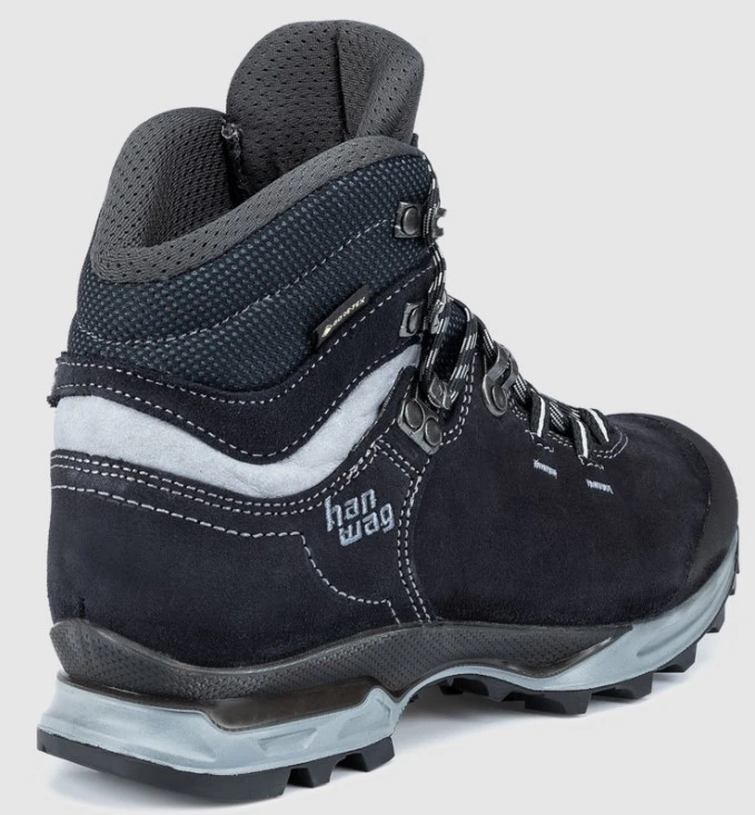 Hanwag Tatra Light Wide Lady GTX - dámské boty určené do lehčího horského terénu. Široká verze (Wide) nabízí více prostoru v přední části obuvi. Jsou vyrobené z suede kůže, která je doplněná goretexem. Mají gumovou obsázkou na špičce, která chrání obuv před okopáním. Podešev má tlumící zóny pro změkčení došlapu.