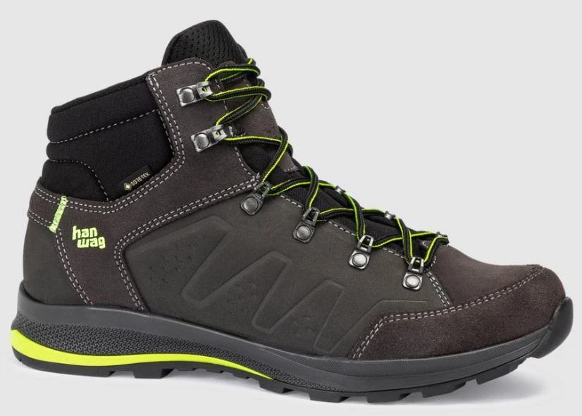 Hanwag Torsby GTX: outdoorové boty do méně náročného horského terénu, mají středné vysoký střih. Svršek je vyroben z vysoce kvalitní semišové a nubukové kůže s gore-tex membránou, která ještě zlepšuje vlastnosti kůže, boty jsou voděodolné.