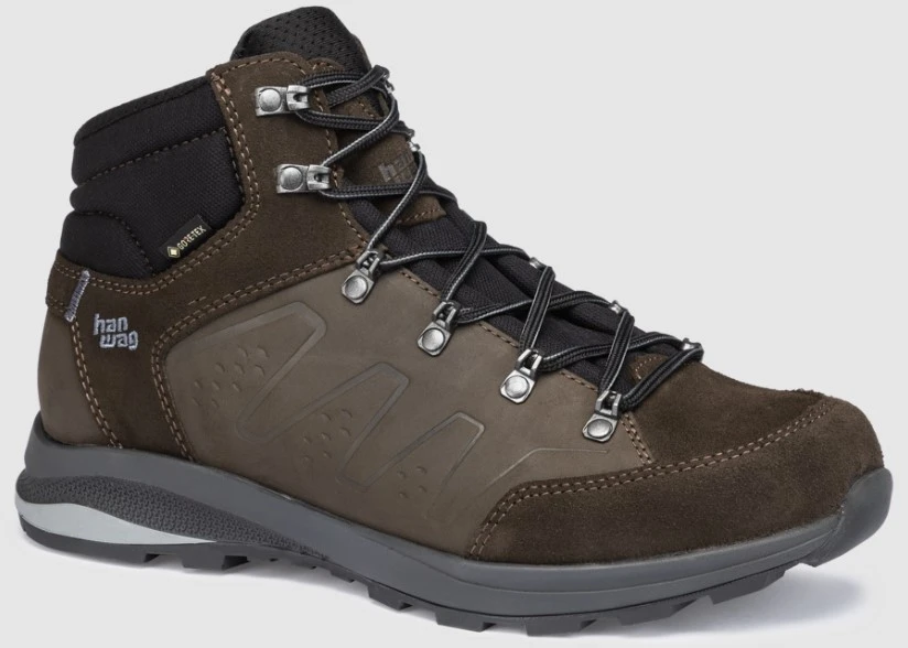 Hanwag Torsby SF Extra GTX: outdoorové boty do méně náročného horského terénu, mají středné vysoký střih. Verze StraightFit-Extra je určená pro širší chodidla, nabízí více prostoru v přední části boty. Svršek je vyroben z vysoce kvalitní semišové a nubukové kůže s gore-tex membránou, která ještě zlepšuje vlastnosti kůže, boty jsou voděodolné.