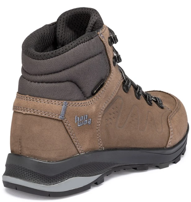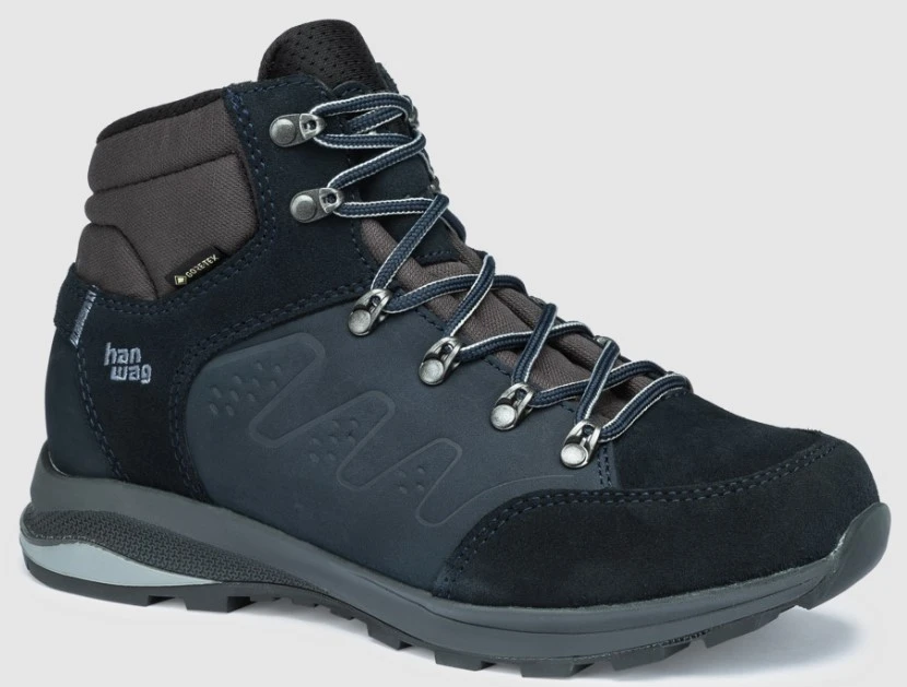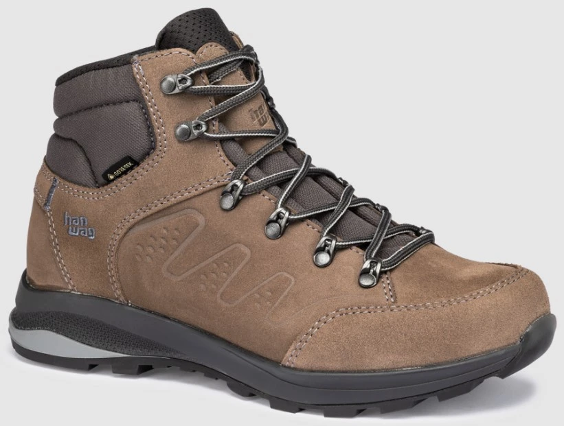 Hanwag Torsby SF Extra Lady GTX: dámské outdoorové boty do méně náročného horského terénu, mají středné vysoký střih. Verze StraightFit-Extra je určená pro širší chodidla, nabízí více prostoru v přední části boty. Svršek je vyroben z vysoce kvalitní semišové a nubukové kůže s gore-tex membránou, která ještě zlepšuje vlastnosti kůže, boty jsou voděodolné.