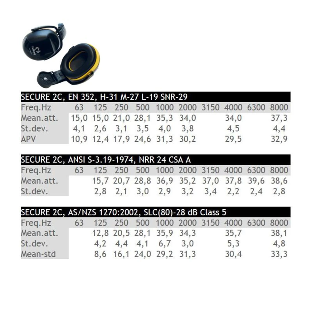 CE EN 352-3:2002, ANSI S-3.19-1974, AS/NZS 1270:2002