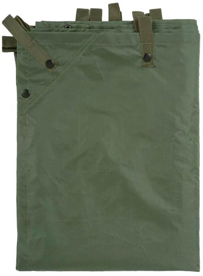Highlander Basha zelená: nepromokavá plachta kterou můžete v deštivém počasí natáhnout přes šňůru nebo napnout na tyčky. Pomocí druků lze spojit více plachet k sobě.