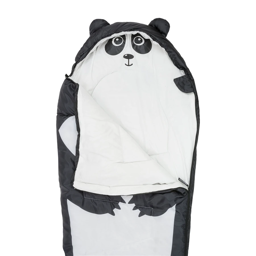 Highlander Creature: Spací dětský pytel s veselým zvířecím motivem. Jedná se o lehký, na dotek příjemný a pohodlný spacák. Je vyroben z kvalitního 190T polyesteru na vnější straně, a uvnitř najdete syntetickou polyesterovou výplň, vhodnou pro alergiky. Vybrat si můžete ze tří veselých zvířecích motivů (Panda, Beruška nebo Žralok). Praktický obal na spacák s potiskem, slouží zároveň jako batůžek. Díky tomu se stane ideálním společníkem na kempování pro vaše děti.