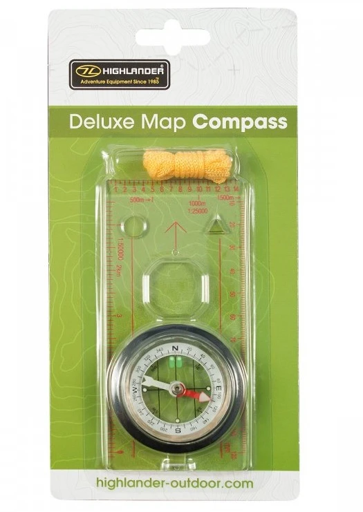 Highlander Kompas DE LUXE: Turistická buzola s kompasem je nezbytnou pomůckou na vašich cestách ve volné přírodě nebo horách. Společně s mapou vám pomůžou najít správnou cestu a zorientovat se v terénu. Na zaoblené základně buzoly najdete otočné kolečko kompasu s luminiscenčními body označujícími světové strany: sever - N (North), jih - S (South), východ - E (East) a západ - W (West) a poledníkové linie. Tyto svítivé body využijete především při používání kompasu v šeru a ve tmě. Vyvážená kovová střelka kompasu v kapalinové kapsli (červená šipka) ukazuje na severní magnetický pól Země.