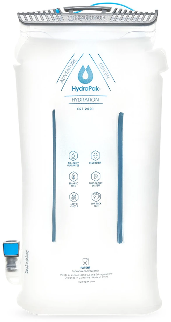 HydraPack Contour 2 l: vak na vodu o objemu 2 litry kompatibilní s batohy různých značek. Má oddělitelnou hadičku, díky tomu při doplňovaní stačí vyndat pouze vak. Po naplnění drží tvar, hadičku snadno připevníte k batohu pomocí magnetického klipu, ventil lze snadno otevřít a zavřít jednou rukou, dobře těsní po každém napití.