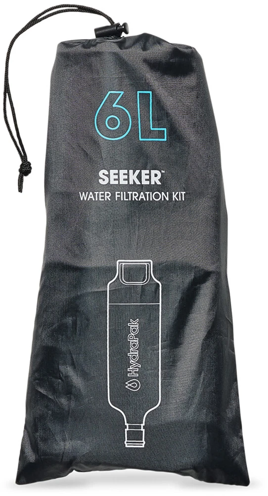 HydraPack Seeker+ 6 l Gravity Filter Kit: vak na vodu o objemu 6 litrů s filtrem, který zbaví vodu škodlivých bakterií a prvoků. Má dávkovací kohoutek, kterým snadno naplníte láhev, umyjete ruce či nádobí, poutka pro snadné nabírání vody, připevnění na batoh, či zavěšené na strom. Hodí se pro nošení a uchování vody v kempu.