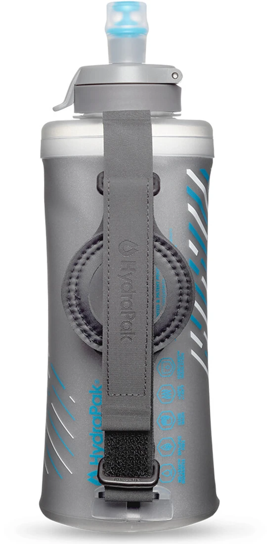 HydraPack Skyflask IT Speed 500: izolační láhev která udrží vodu déle studenou než klasická sportovní láhev. Má nastavitelné poutko díky kterému se snadno drží v ruce. Láhev je ideální na běhání. Je vyrobena z měkkého materiálu, po vyprázdnění ji snadno složíte, aby se vešla do kapsy.