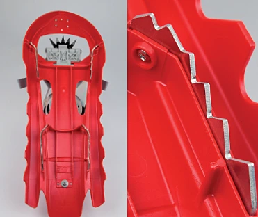 Zamknutí či odemknutí paty je možné trekovou holí. To vám vyrazně usnadní pohyb přes překážky. Dotažení boty je pomocí ráčny jako u snowboardového vázání.
