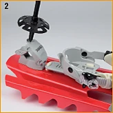 Lišta, po které se posouvá uchycení paty, je z vyztuženého materiálu. Proto lze zamykací systém použít i jako celkem užitečné podložení paty, které též známe ze skialpů.