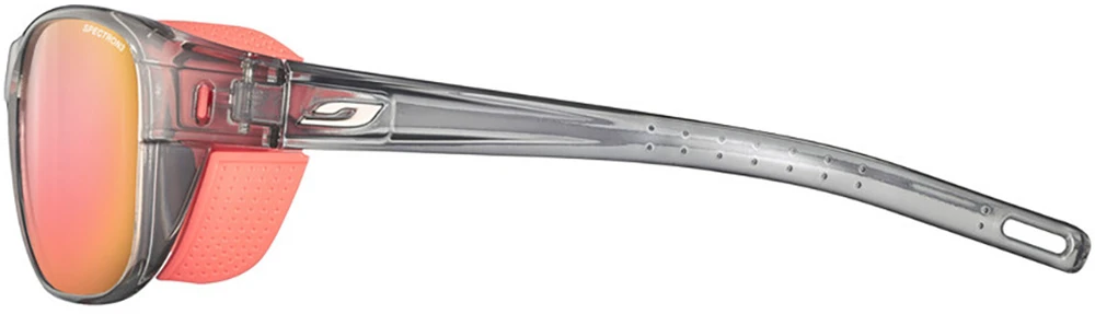 Julbo Camino M Spectron 3CF: sportovní sluneční brýle s filtrem kategorie 3, který je vhodný na intenzivní letní slunce. Brýle se hodí na různé sportovní aktivity, turistiku, horolezectví. Polykarbonátová skla jsou odolná proti poškození, brýle mají skvělé odvětrání, nemlží se. Nožičky jsou tvarované, hladké, nezachytávají vlasy. Bočnice, které chrání oči i ze stran, lze snadno sundat. Jsou vhodné na menší obličej.